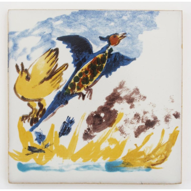 A Ratton limited edition tile designed by Paula Rego, printed in colours with a pheasant flying past yellow grasses painted signature, numbered 126/150 14cm. square