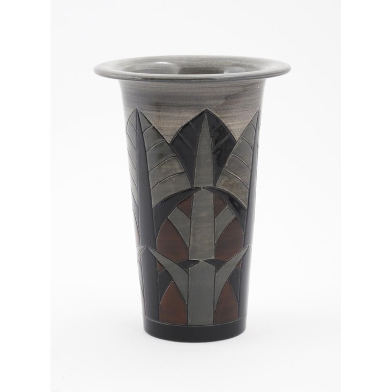 'Sunburst Egyptian' a Dennis Chinaworks limited edition vase designed by Sally Tuffin, dated 2002, painted in shades of grey, brown and black impressed and painted marks, numbered 9, 16.5cm. high