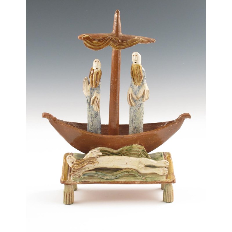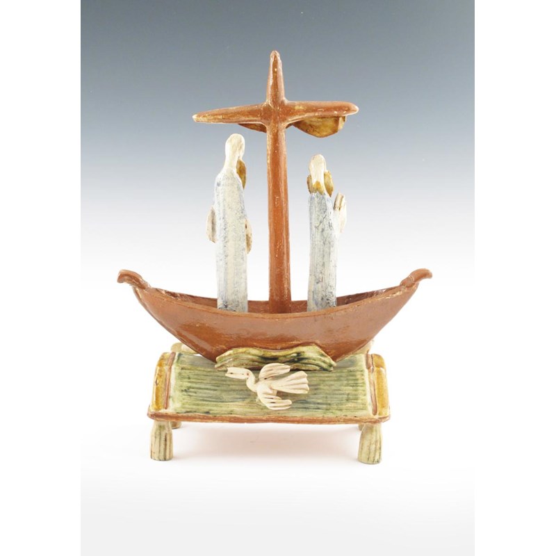 Geoff Fuller (born 1936) a Terracotta figure group of two figures in a boat