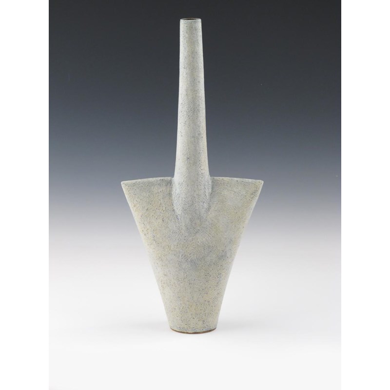 a tall, stoneware spade form vase, covered in a textured and pitted off white glaze impressed seal mark 58.5cm. high