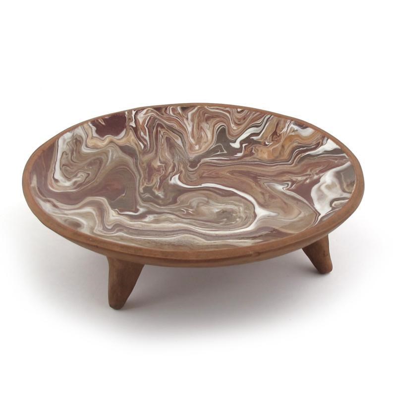 an unusual tripod dish, the interior with marbled slip decoration, impressed St Ives mark 31cm. diam.