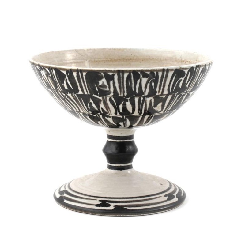 an Aldermaston Pottery large earthenware goblet vase, painted in black on a cream ground painted monogram 17cm. high
