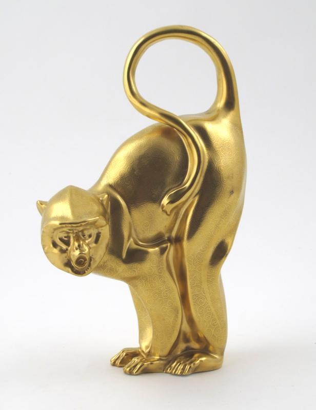 A modern Minton model of a standing monkey, produced to celebrate the year of the monkey, 2004, covered in a textured gold finish printed factory marks 22cm.high