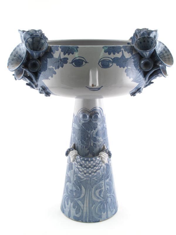 A large tin-glazed pottery studio table centrepiece by Bjorn Wiinblad