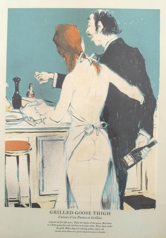 A set of four recipe prints, each with erotic image, framed one with crossed out signature in print images 36.5 x 28cm.