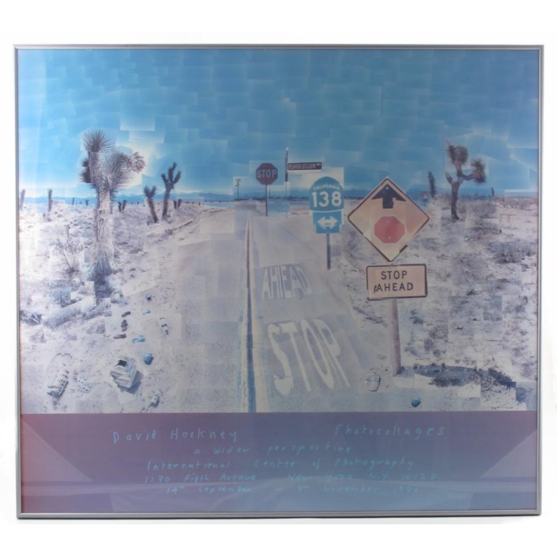 'David Hockney Photocollages' a photographic poster, framed, image 92 x 82cm