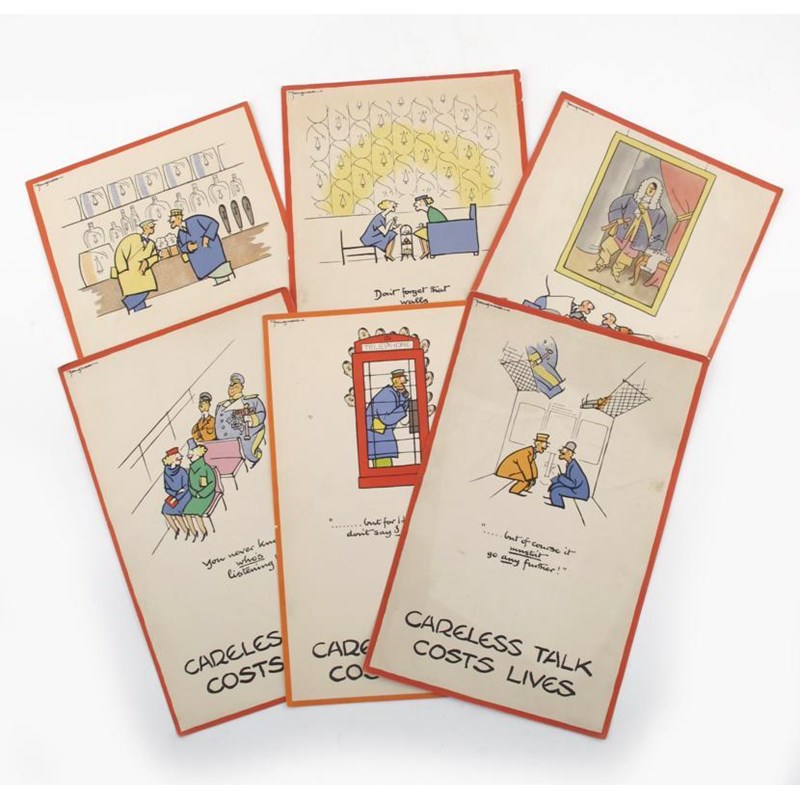 'Careless Talk Costs Lives' six lithographic posters, designed by Fougasse (Cyril Bird), signed in the print 32 x 20.5cm.