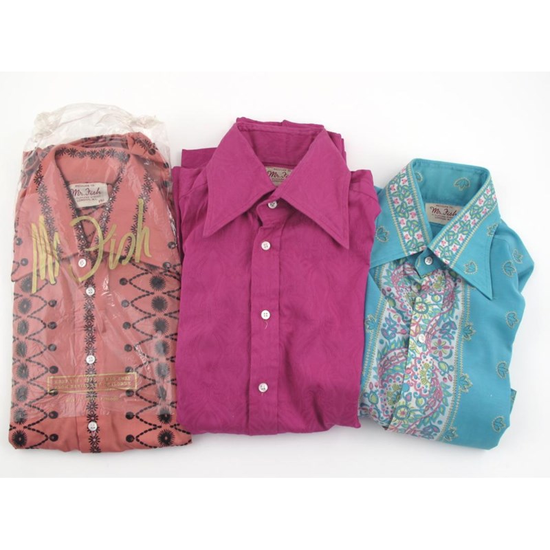 A collection of Mr Fish, Clifford Street shirts and tops, 1970s, a Maddalena Marconi clutch bag and a tie