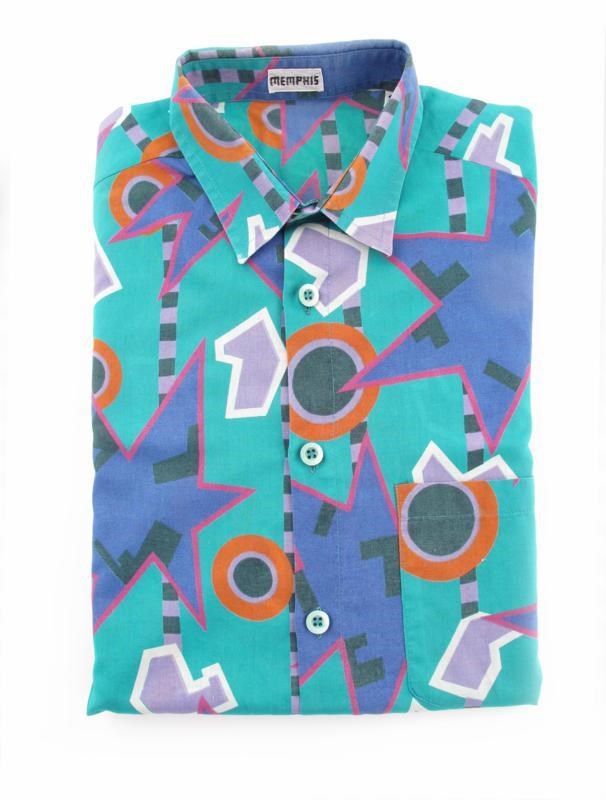 A Memphis Zambia long sleeve cotton shirt designed by Nathalie du Pasquier, small size, slim fit Memphis label