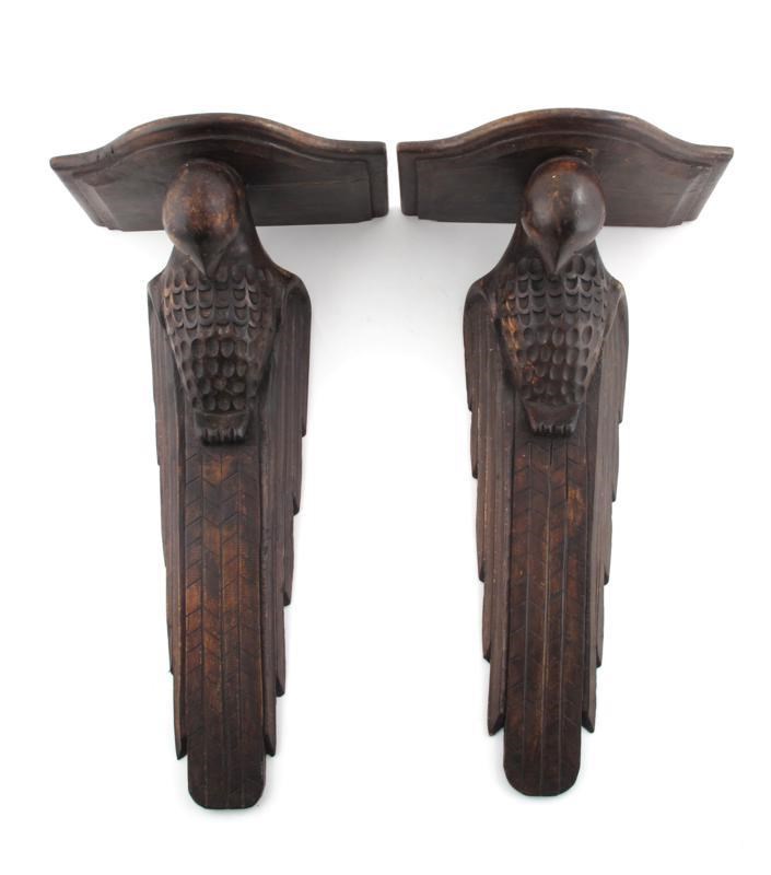 A pair of wall brackets, each modelled as a parrot unsigned 60cm. high