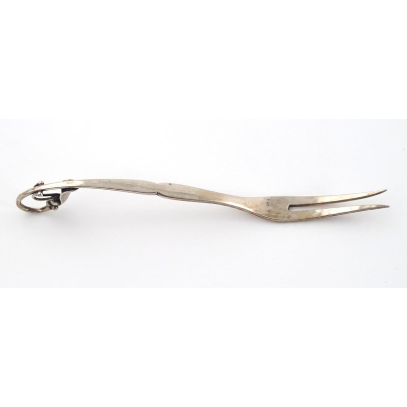 A Georg Jensen silver pickle fork, with cast foliate terminal, stamped marks, no.21, 13.5cm. long