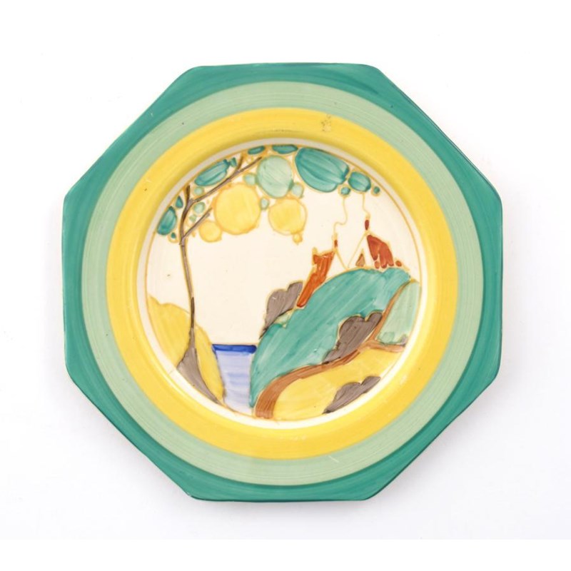 'Secrets' a Clarice Cliff Bizarre Octagonal side plate painted in colours