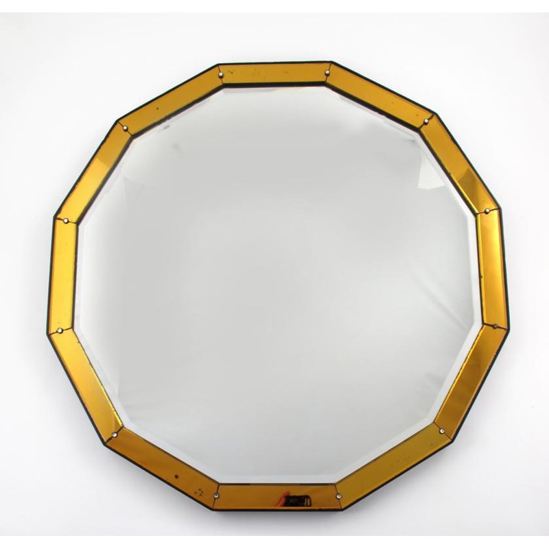 A peach tinted mirrored glass wall mirror, dodecagonal form, on ebonised wooden back unsigned 73cm. wide