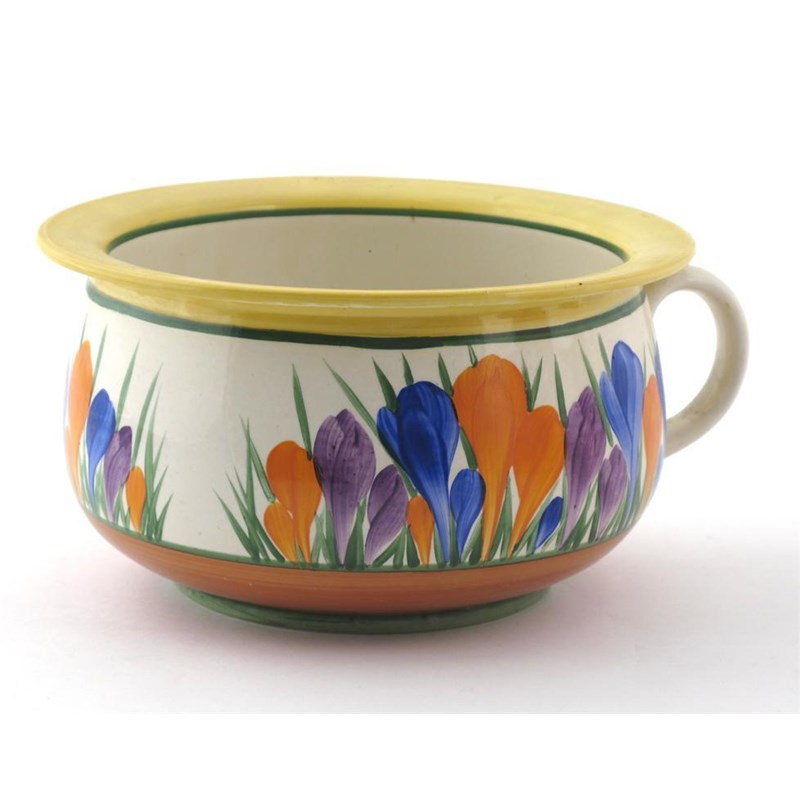 'Crocus' a Clarice Cliff Bizarre chamber pot, painted in colours printed and painted marks 25cm. diam.