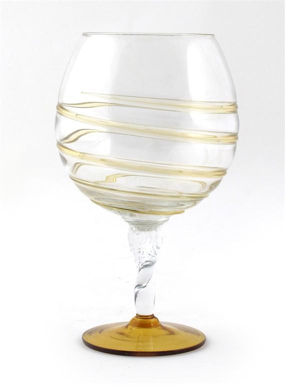 A Powell, Whitefriars glass goblet, twist stem, the bowl with amber trailing unsigned 24cm. high