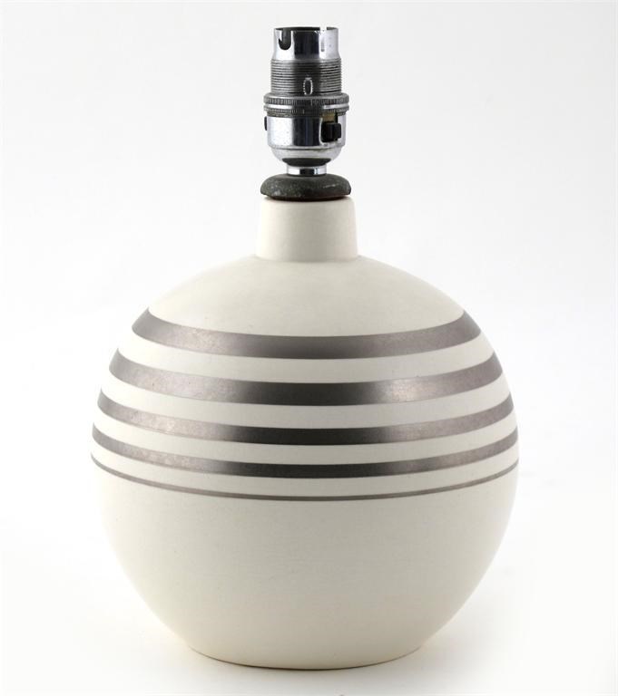 A Wedgwood Veronese ware lamp base, ovoid decorated with graduated silver bands impressed marks 18cm. high