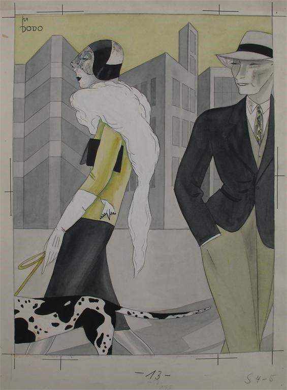A gouache design on paper by Dodo Burgner, probably for Ulk magazine, signed and dated 29 image 40 x 30cm.
