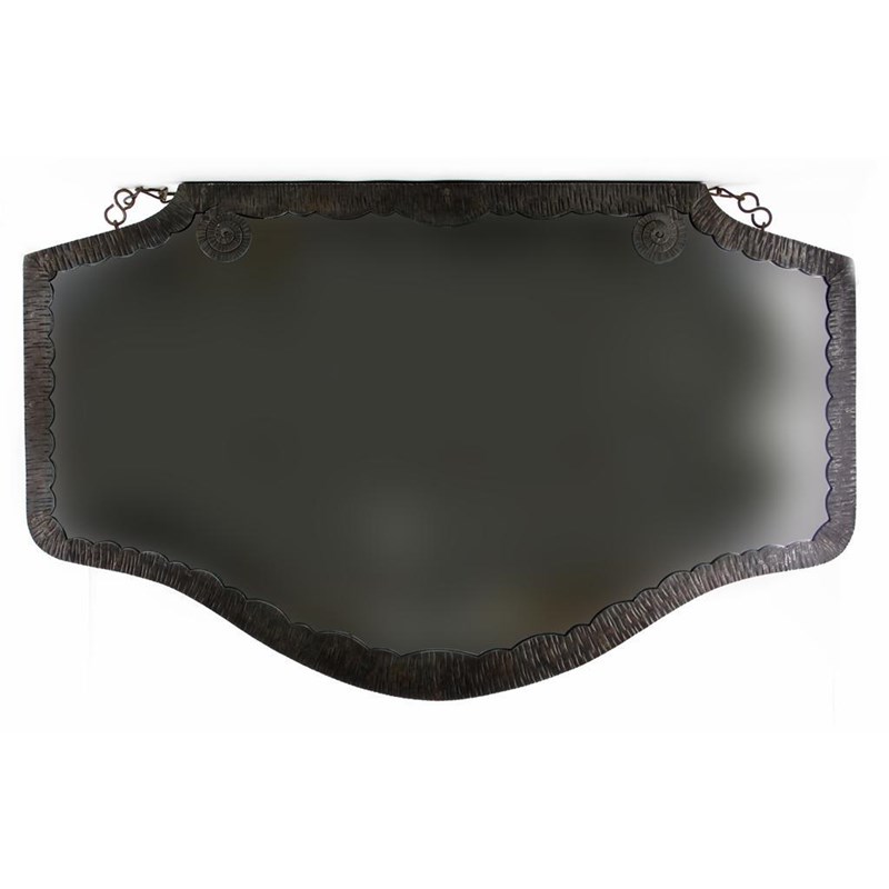 A wrought iron wall mirror, in the manner of Edgar Brandt, shaped rectangular from unsigned 100cm. wide