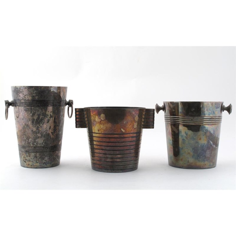 An Elkington electroplate ice pail, after the design by Luc Lanel for Christofle, a French ice pail and another stamped marks 18.5cm. high
