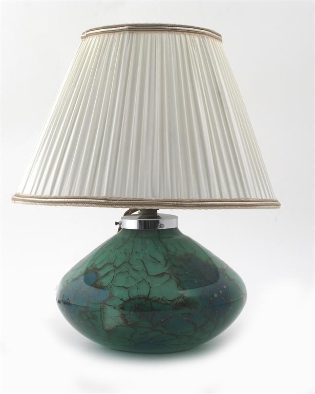 A W.M.F Ikora glass table lamp, internally decorated with crackled green unsigned 19cm. high