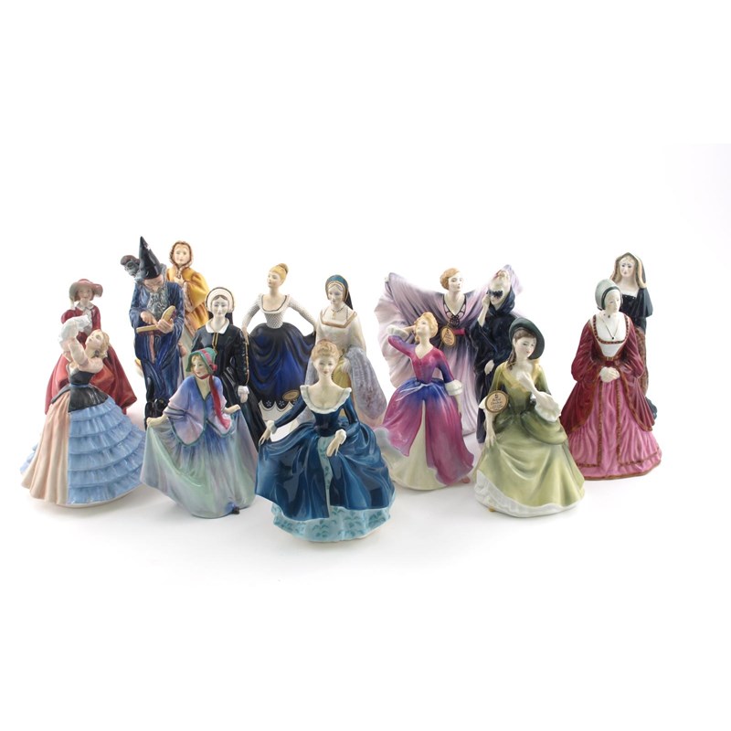 Ninety-four Royal Doulton and other figures, painted in colours printed marks, damages