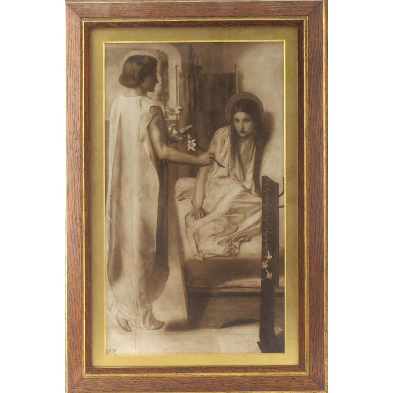 'The Annunciation' a sepia tinted printed from the painting by Dante Gabriel Rossetti