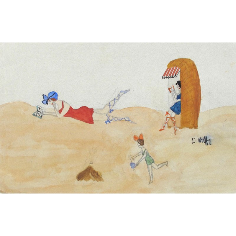 ‡Dorte Clara 'Dodo' Burgner' (1907-1998) figures sunbathing on the beach an original artwork design