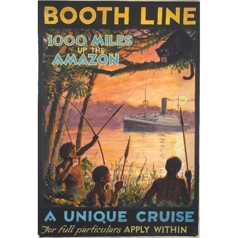 'Booth Line 1000 Miles Up The Amazon' an original artwork design on board by Charles Birchall Ltd