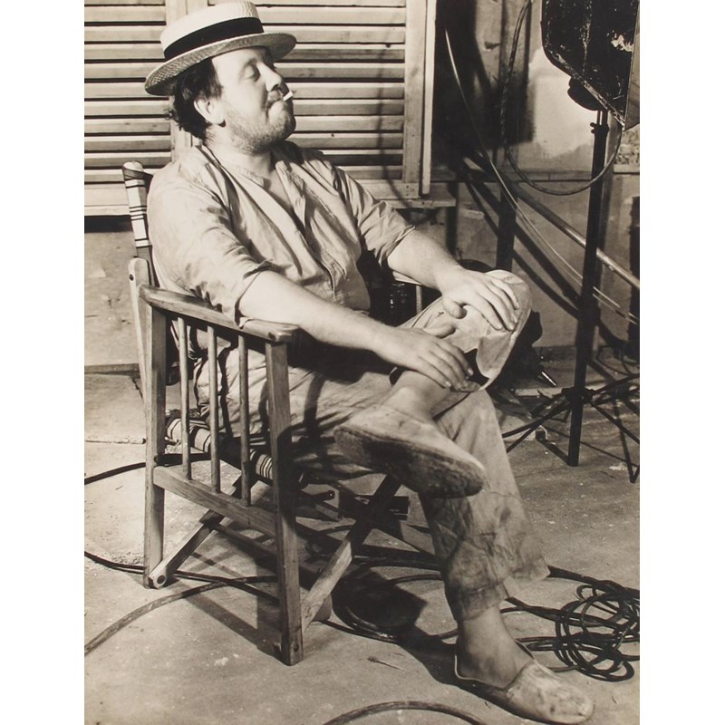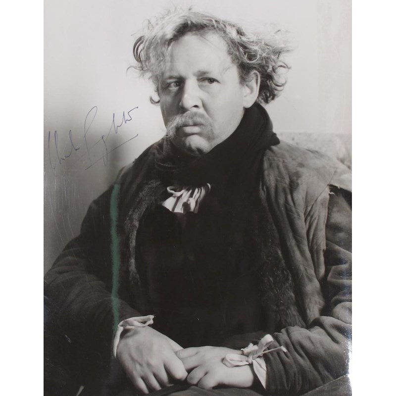 Laughton (Charles), Photograph of the actor as Rembrandt, signed, 258 x 204mm; Typed letter signed, August 24, 1939, 2pp, addressed to Hope [Chennhalls], referring to his hard work on the film 'Hunchback'; a crumpled and torn signature on tissue paper, a signed programme for the Gala Premiere of Laughton in 'Vessel of Wrath'; 6 unsigned photographs of Laughton (one a postcard), a photograph of Elsa Lanchester, Laughton's wife, and a telegram from Laughton - with 4 others mostly relating to the Ustinovs (15)