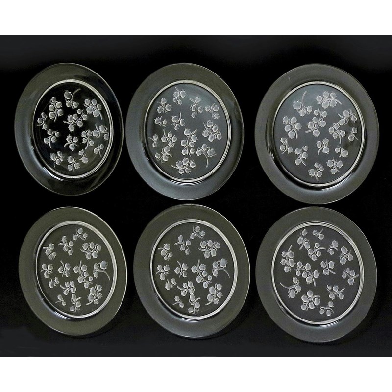 'Muguet' No. 10-3045 a set of six Lalique clear and frosted glass plates designed by Rene Lalique