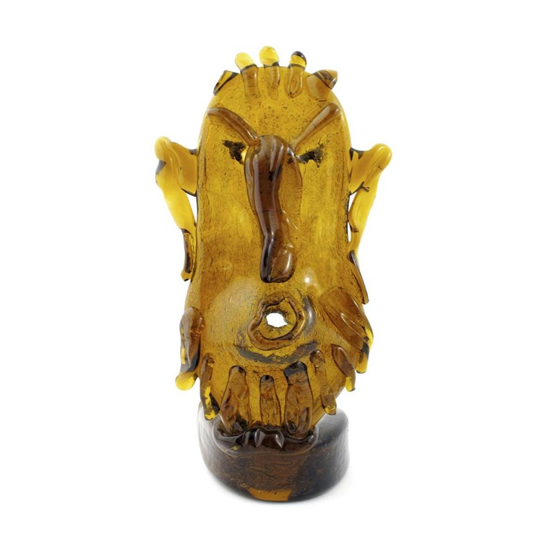 'Picasso' a glass sculpture by Gio Colucci, amber glass with air bubble inclusions, with applied glass features, painted GC monogram 43cm. high