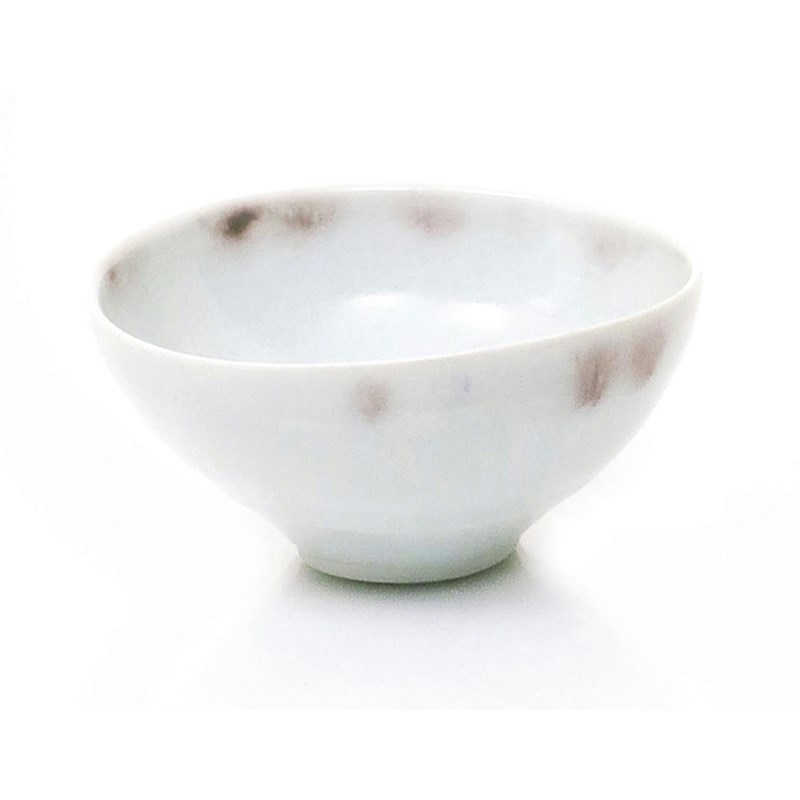 a porcelain bowl, footed form pale blue glaze with sang de boeuf spots impressed seal mark, 11.5cm. diam.