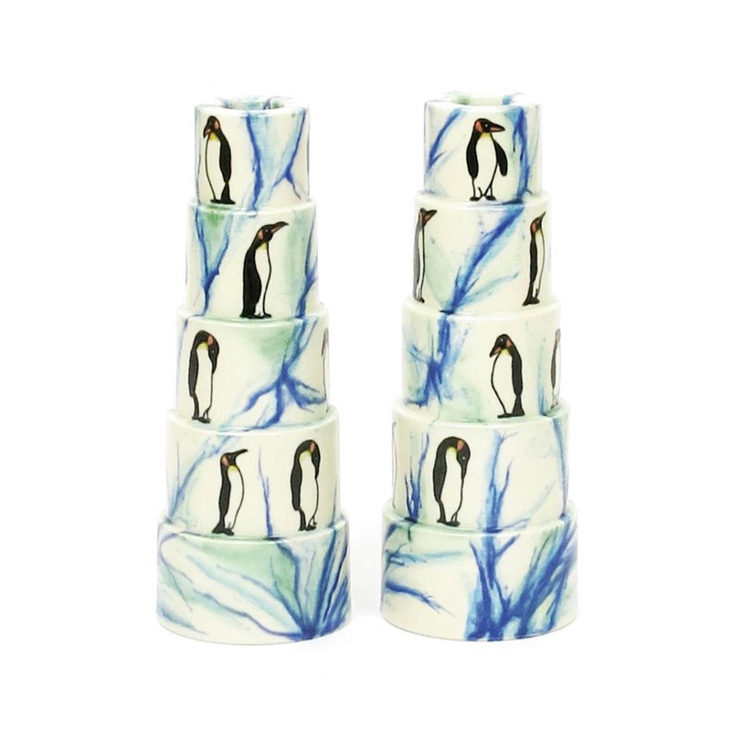 'Penguin' a pair of Dennis Chinaworks stepped candlesticks designed by Sally Tuffin