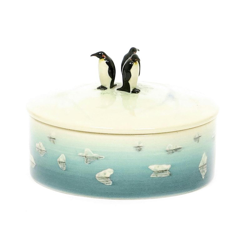 'Penguins' a Dennis Chinaworks pot and cover designed by Sally Tuffin
