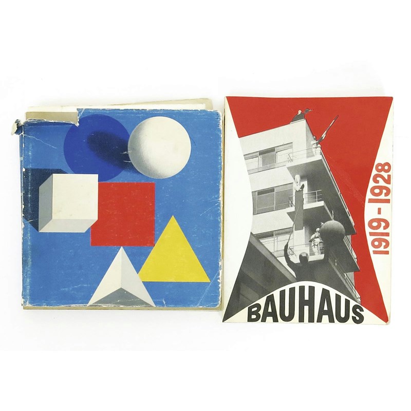 A collection of design books, including '50 Years Bauhaus' Royal Academy of Arts Catalogue 1968, 'Faberge 1846-1920' V&A catalogue, and 'Masters of Wood Sculpture'