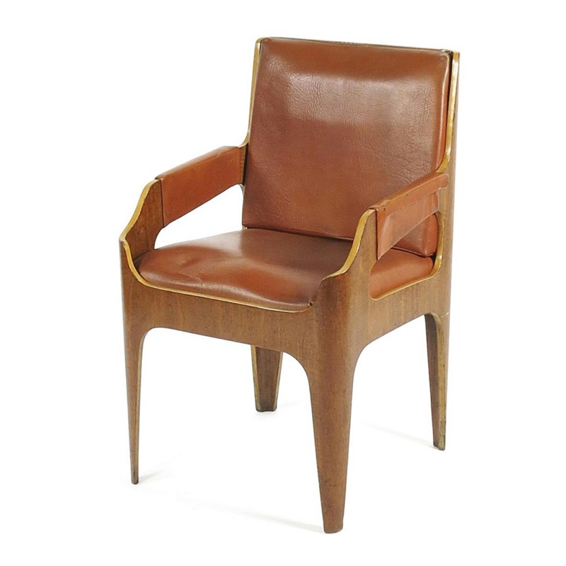 A laminated plywood armchair designed by John Wright FRIBA for the Canberra liner