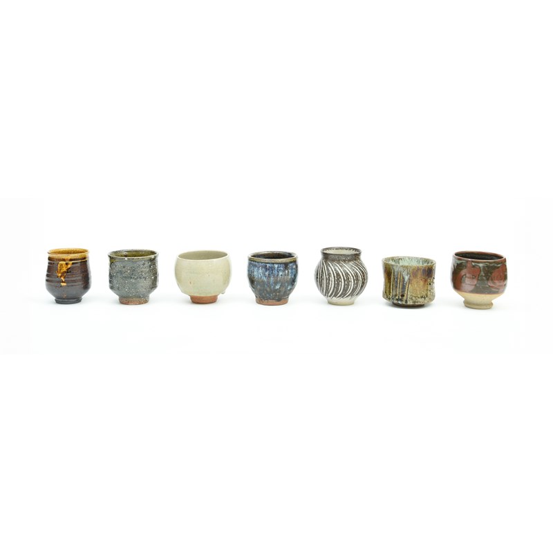 9cm high; and a John Leach yunomi, a Trevor Corser yunomi, a Mark Griffiths yunomi, a Michael Leach small vase, and two unmarked yunomis (7).