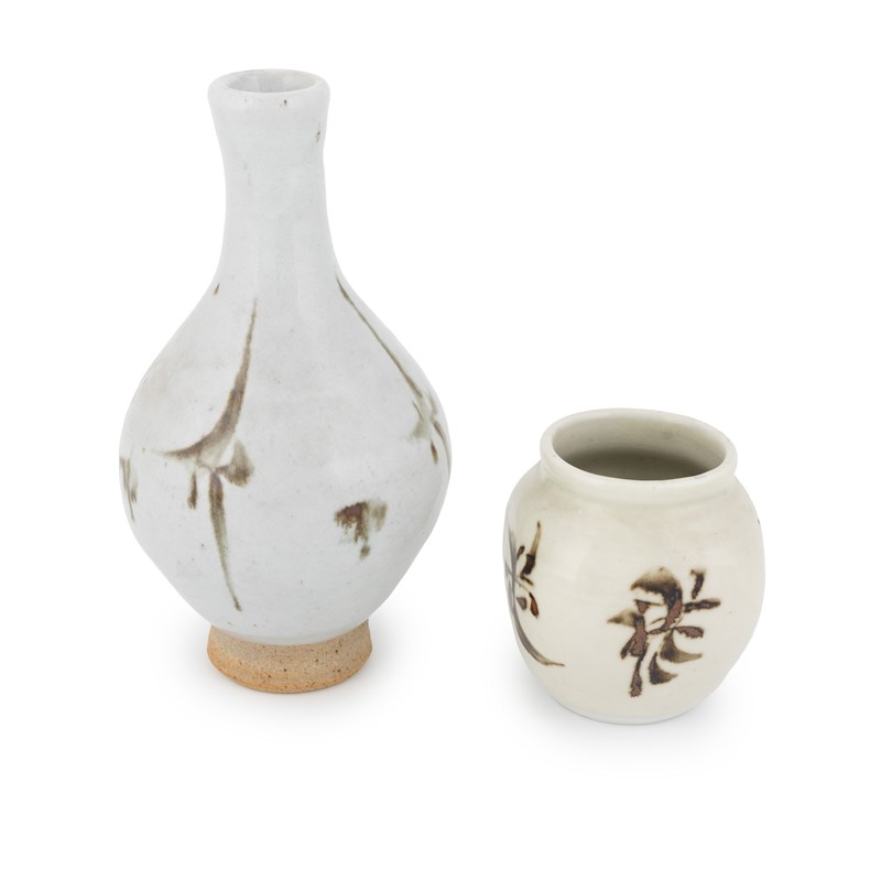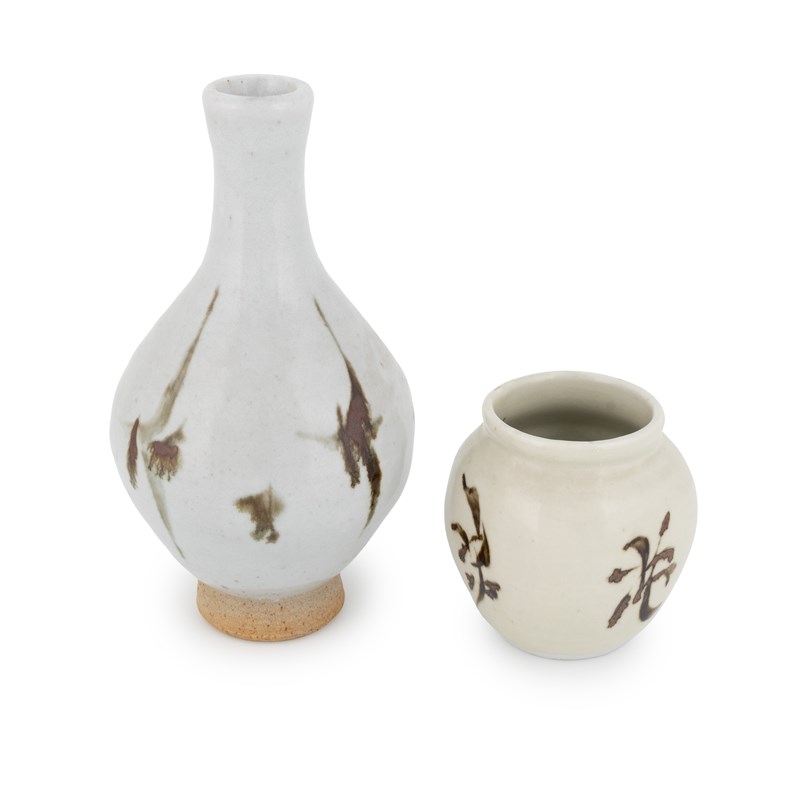 21cm high; with a similar porcelain pot by Ursula Mommens, 9cm high (2).
