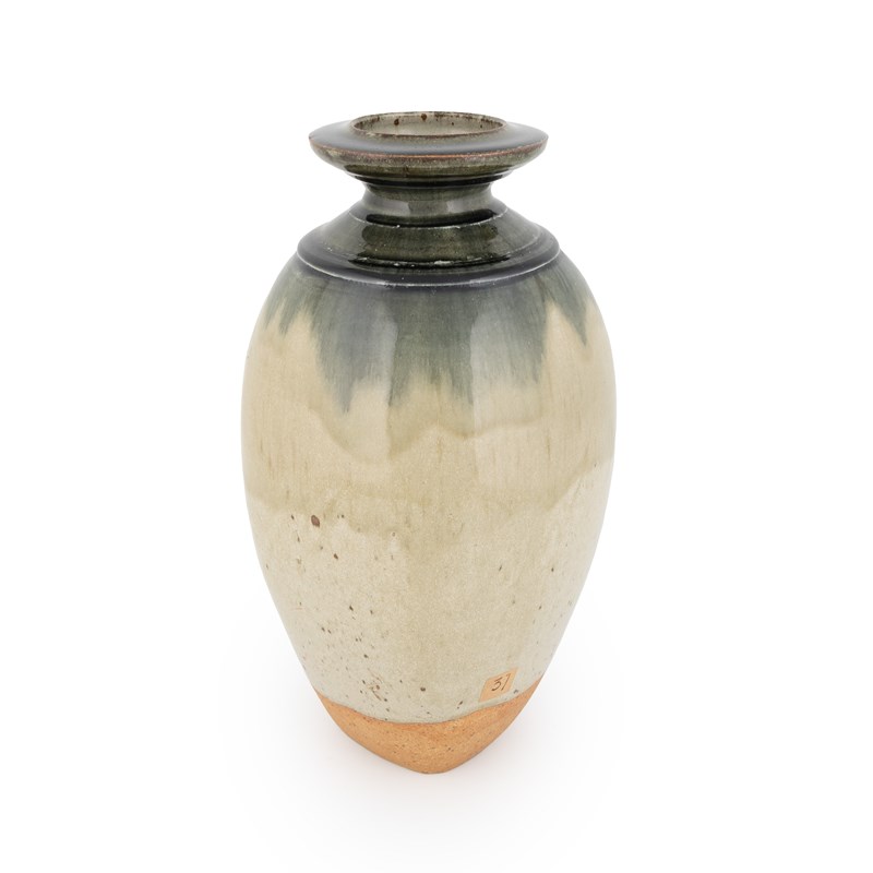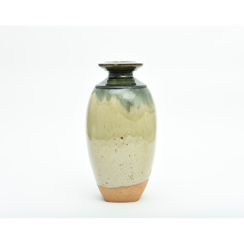 covered in a green ash glaze to the body, with running darker green ash glaze to the top