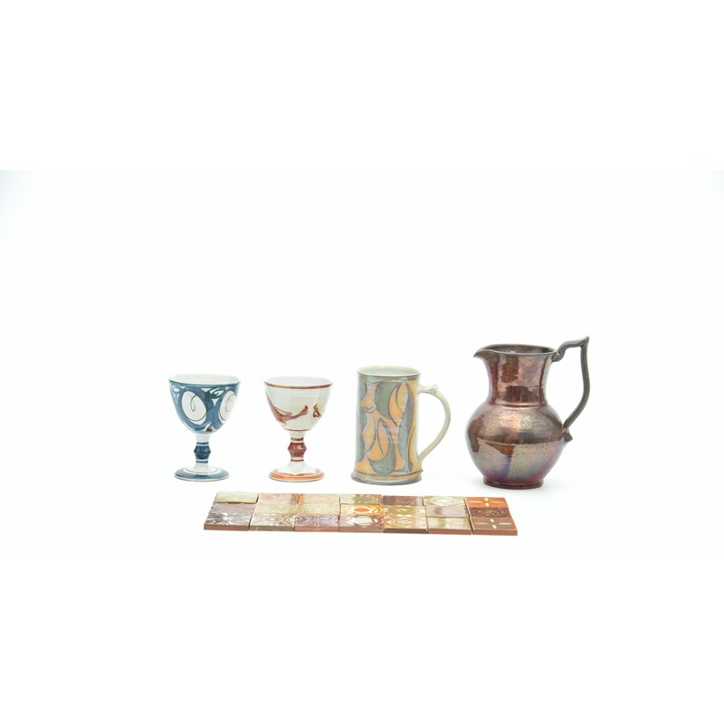 each 5 x 5cm; and a ewer, two goblets and a tankard, all by Alan Caiger Smith (qty.)
