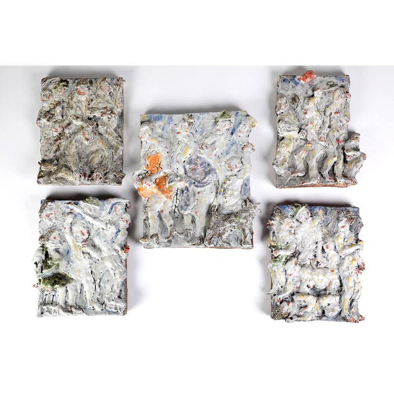 A set of five figurative plaques