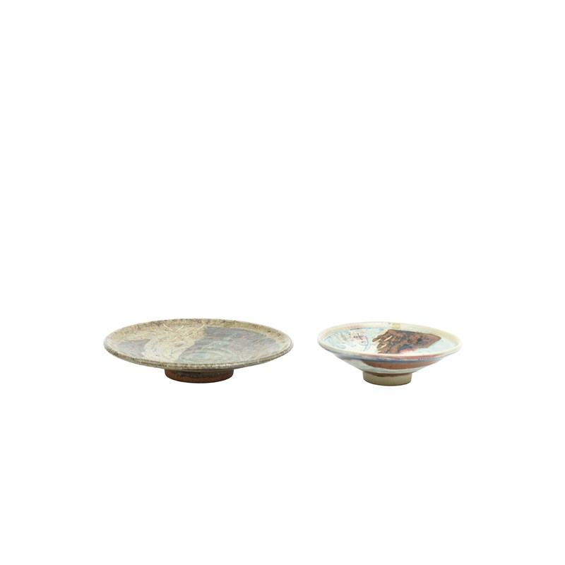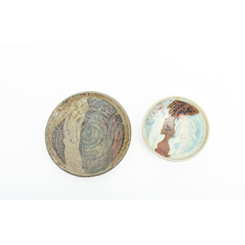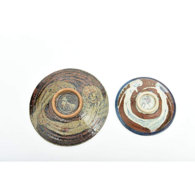 14cm diameter; and a similar stoneware dish by Eric James Melon, 19cm diameter (2).
