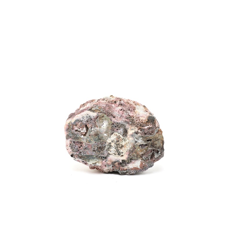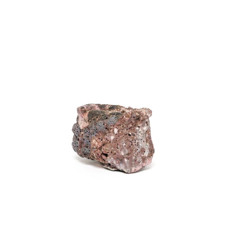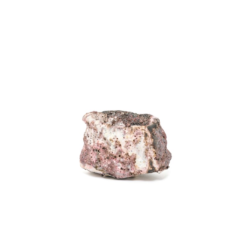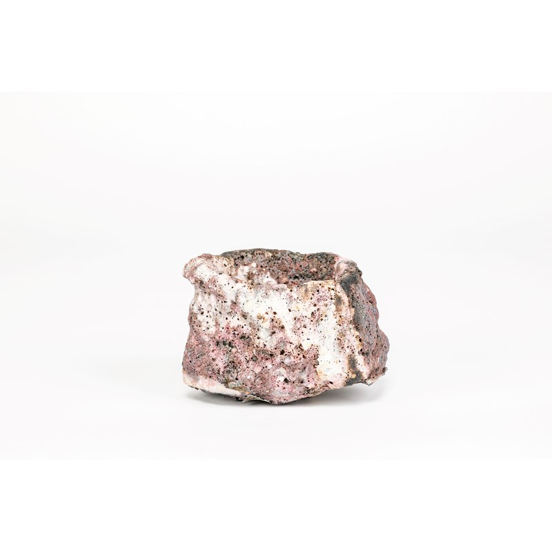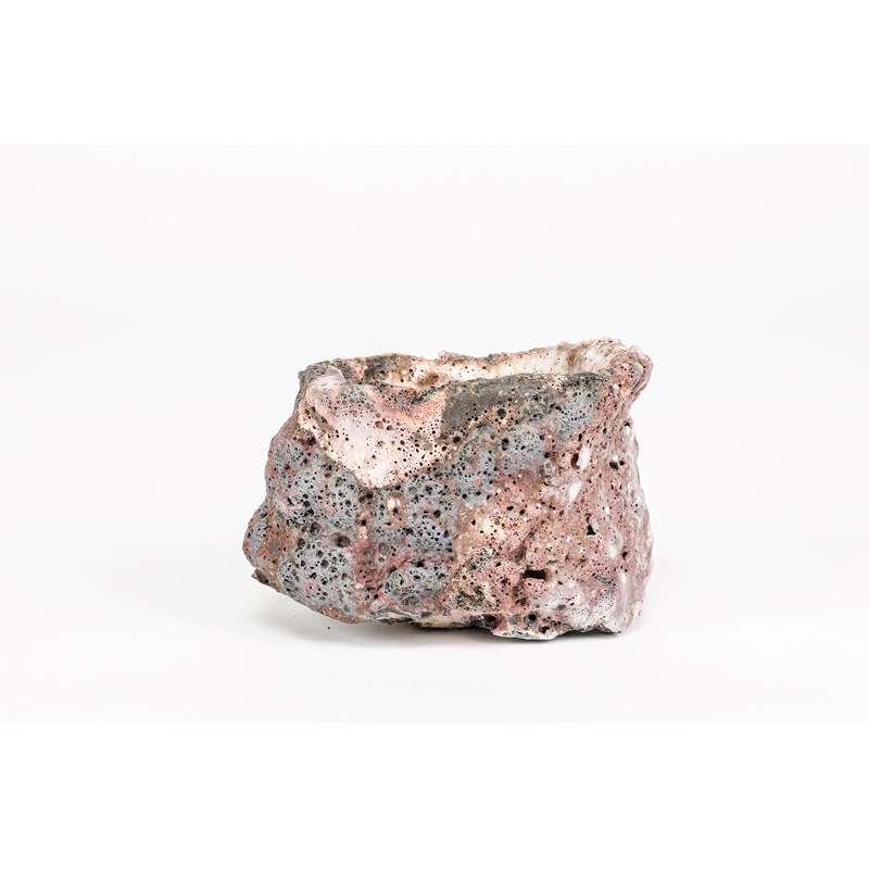 stoneware, covered with pink and white running volcanic slips