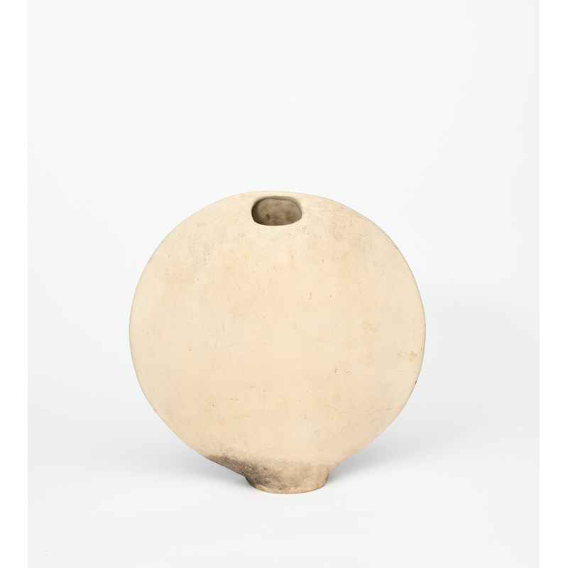large, flattened earthenware vase, biscuit fired