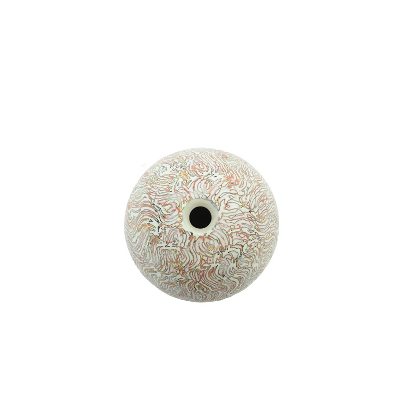 porcelain, ovoid form, with a red and black pattern on a white glaze