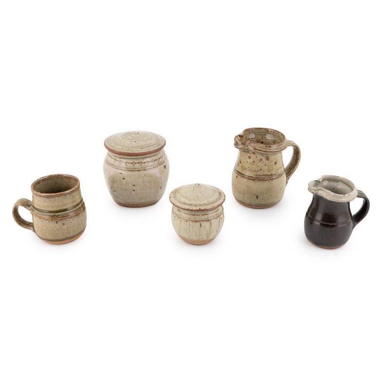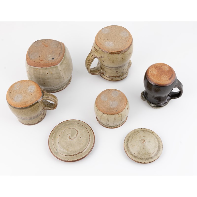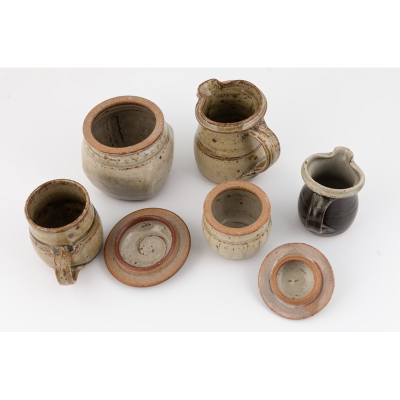 9cm high; and two small jugs, a coffee cup and a jar and cover, all by Richard Batterham (7).