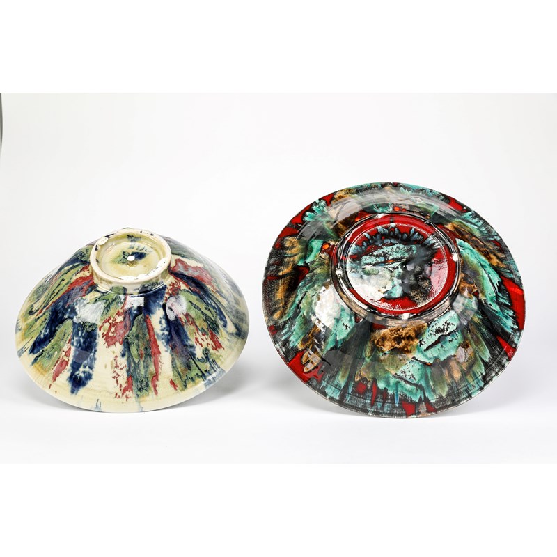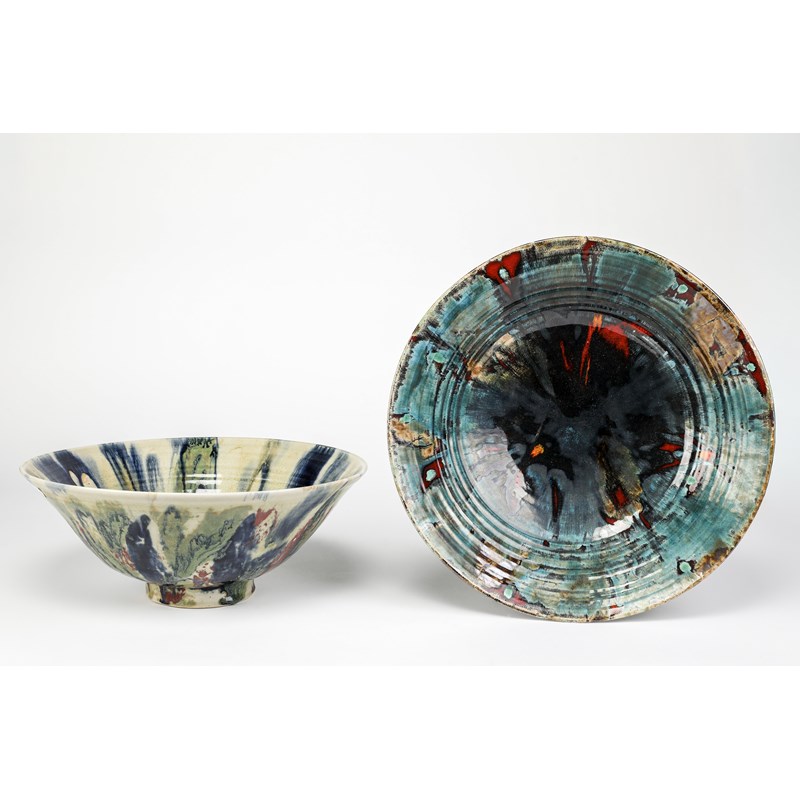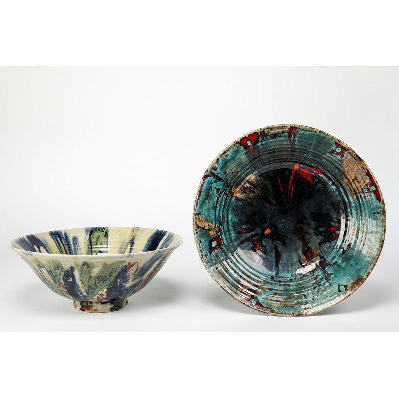 15cm high, 37cm diameter; and a large shallow bowl by Janice Tchalenko (2).