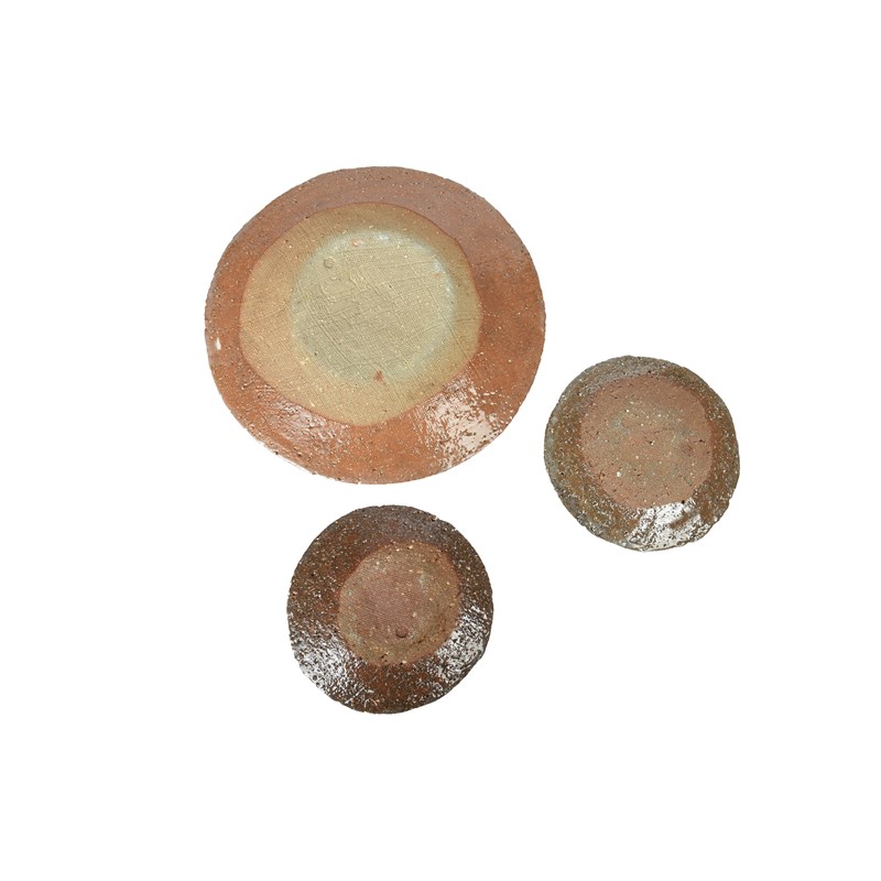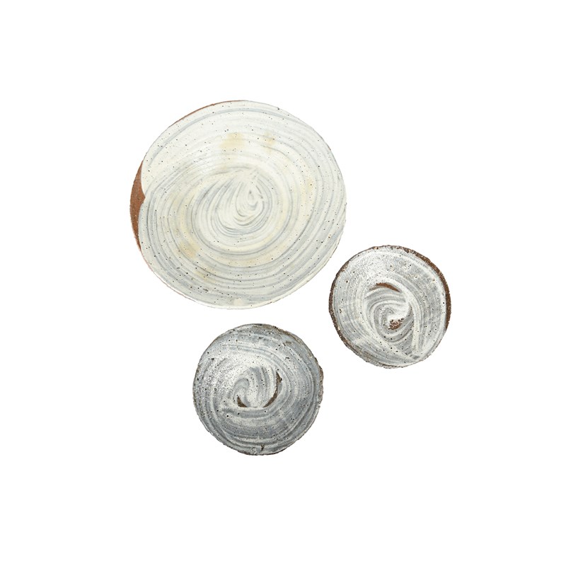 with two smaller and one large plate, with brushed glaze