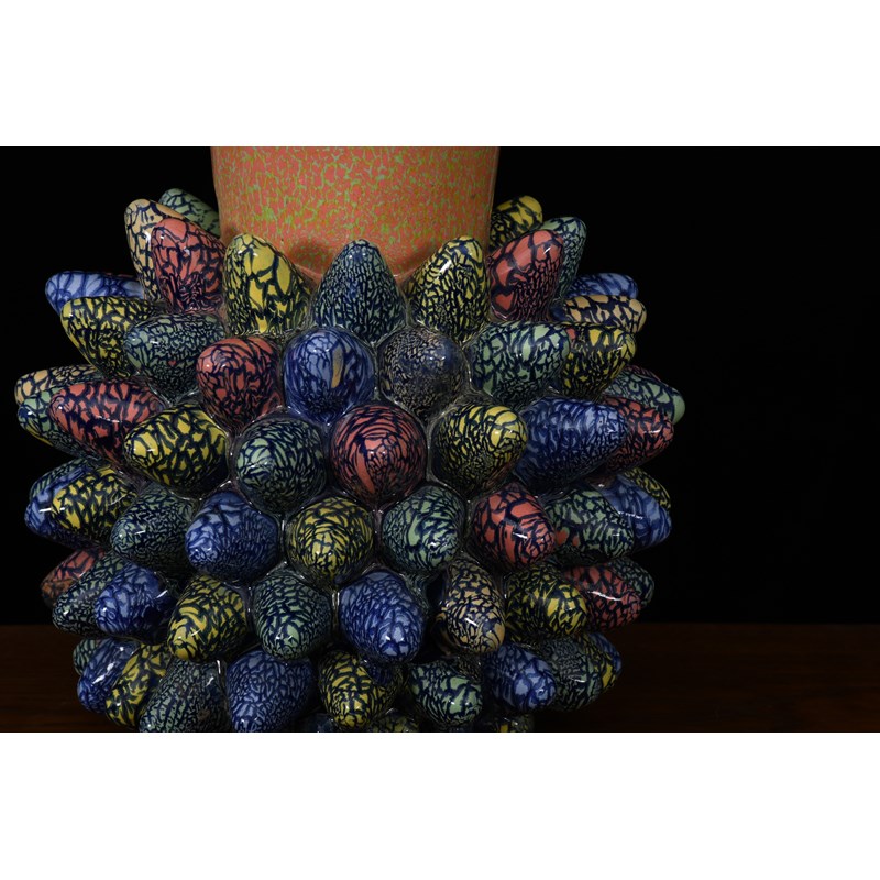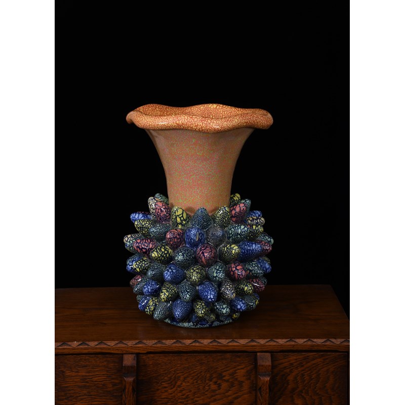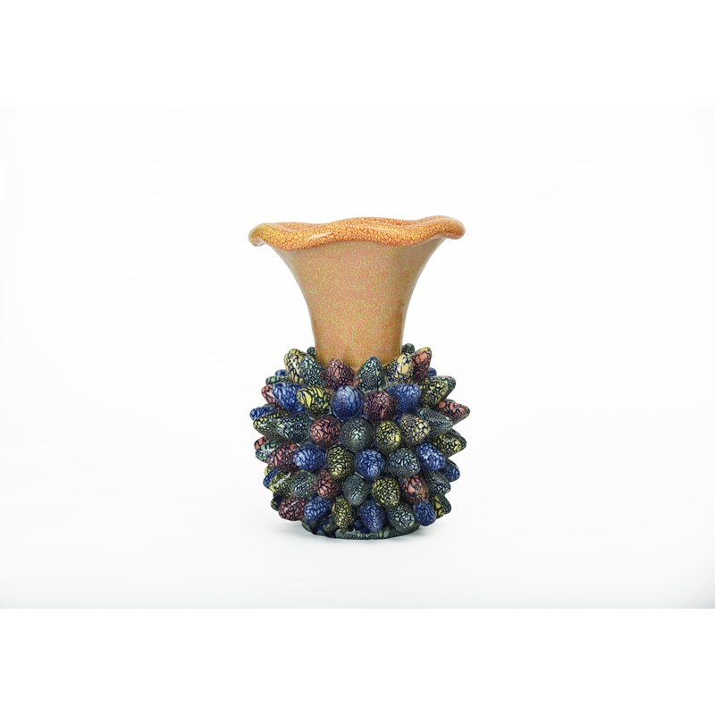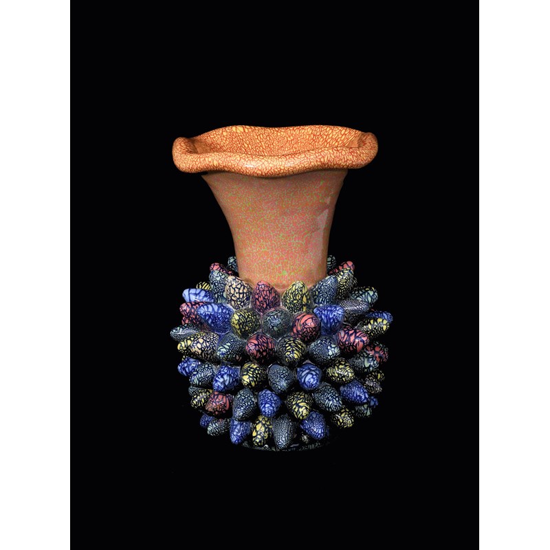 a stoneware vase, glazed in colours