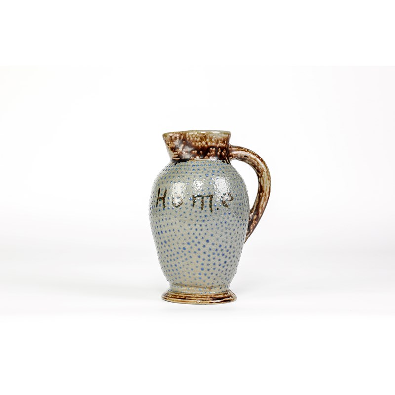 painted with the motto Home is Home on a blue spotted pattern with grey ground